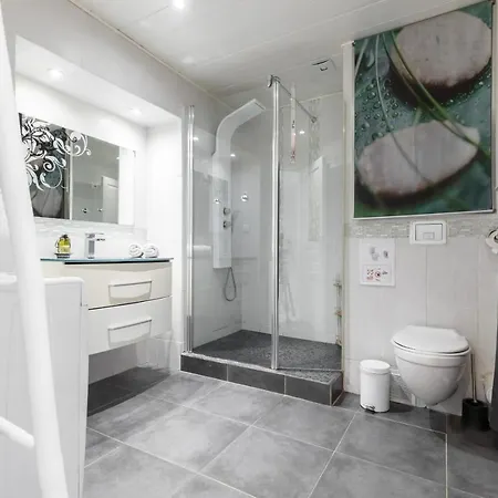 At Amazing 3 Bdrs And Garden Place Du Pin Parking ! apartment, a separate toilet and a shower are provided to improve your comfort. A hairdryer, bath sheets, and towels can also be found.