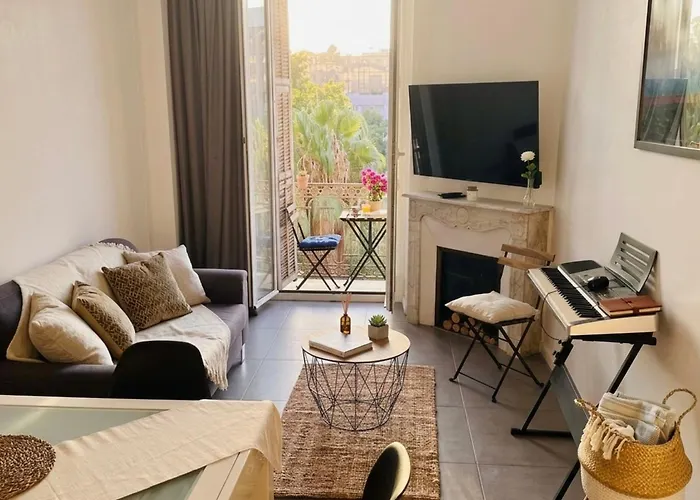 The 62 ft² Charming Central Apartment For 6 Nice, located in the Riquier district of Nice, is 0.9 miles from Marc Chagall National Museum and features elevator and an outdoor fireplace.