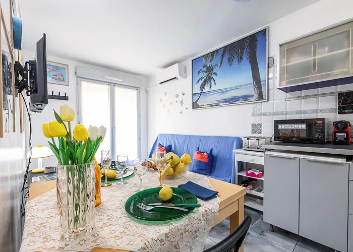 Apartement La Fenice - Happy Rentals apartment provides guests with the convenience of self-catering amenities, like a kitchenette and an outdoor dining area for their enjoyment. Nice Cote d'Azur airport is at a 15-minute driving distance, and Sevillan bus stop is just around the corner from the 35 ft² apartment. The apartment opens onto a terrace.