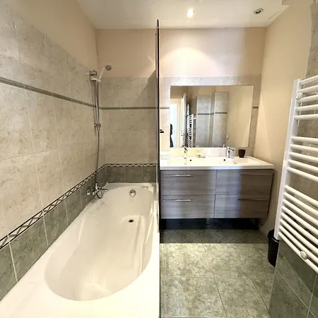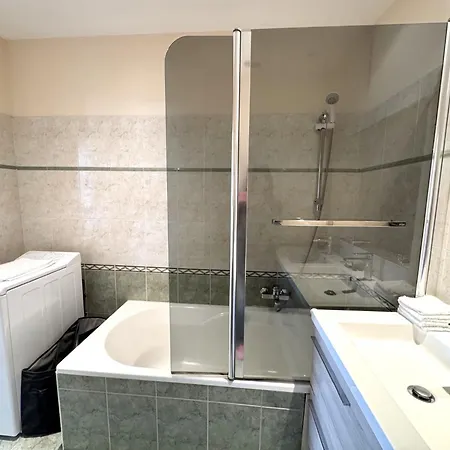 Enhancing your comfort, a washing machine can be found at Aparthotel Riviera - Hotel Des Postes 2 - City Center Massena. Furthermore, the bathroom boasts a hairdryer, bath sheets, and towels.