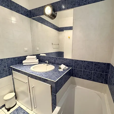 Enjoy the comfort of a bathroom in B G La Residence Grimaldi Promenade Des Anglais, which is equipped with hair dryers and towels.