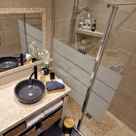 Nice Charmant 3 Pieces Proche Mer Parking apartment has a balcony and a dressing area, and comforts such as air conditioning. The apartment offers guests the convenient feature of hairdryers, bath sheets, and slippers in the bathroom. A walk-in shower can also be found.