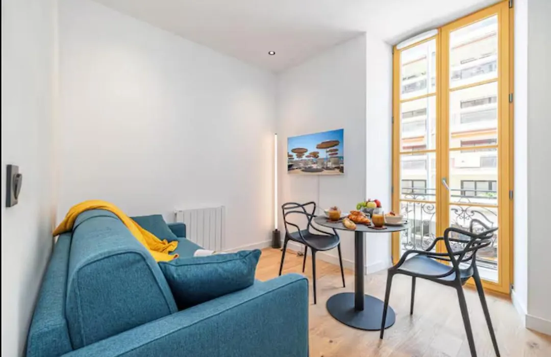 The apartment is located within a few blocks of Avenue Jean Medecin. The 20 ft² apartment is also situated around 5 minutes by foot from Marche Aux Fleurs Fresh Food Market. The property also lies 1.5 miles from Harbor stroll Marina.