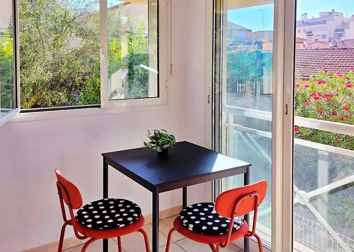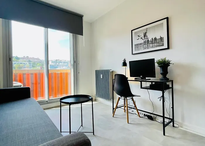 CalifornieThe 27 m^2 Studio With Terrace And Sea View, 10 Min To The Beach Nice, located in the Arenas district, about a 15-minute walk from Phoenix Parc Floral de Nice, features views of the sea. Wi-Fi is…View details+from
