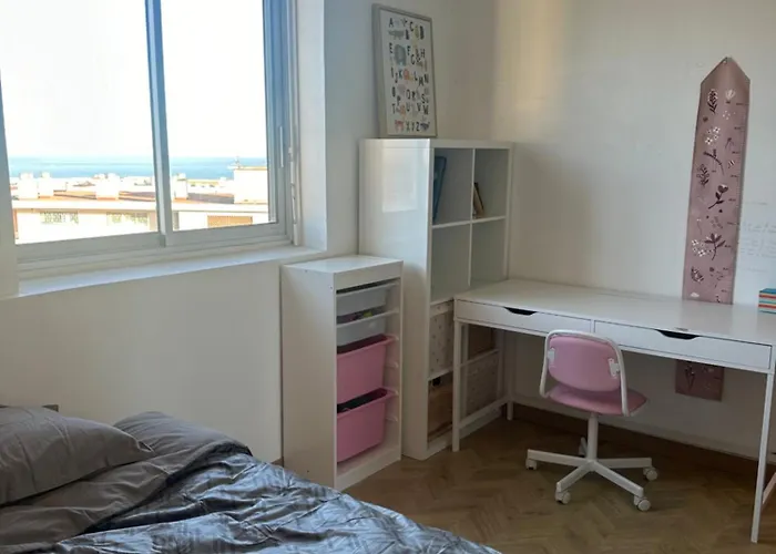 Grand Appartement 5 Chambres, 5 Television , 95 M2, Vue Mer, Tramway Sur Place, Gare Train 2 Min, Aeroport 5 Min , Large Apartment 5 Bedrooms, 5 Televisions, 95 M2, Sea View, Tram On Site, Train Station 2 Mins, Airport 5 Mins