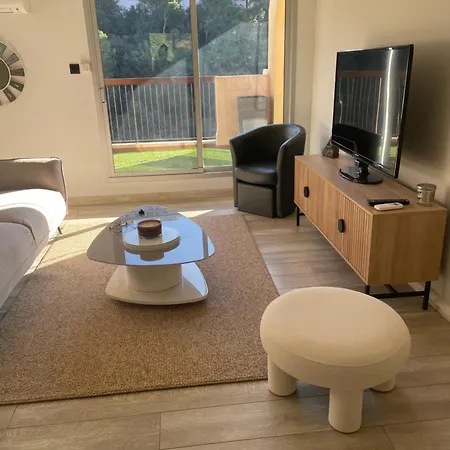 L Olivier - Vue Mer - Clim - Piscine - Tennis - 6P apartment boasts a range of amenities for your comfort, including an electric kettle, tea and coffee making facilities, and a kitchenware. The accommodation is only a few steps from College de l'Archet bus stop.