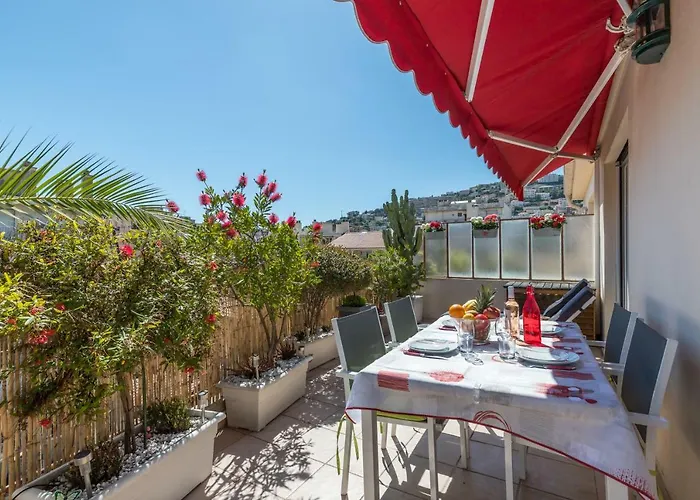 Staying at Le Mantega - F2 Moderne,Centre Ville, 2 Grandes Terrasses,Climatisation, Ascenseur Nice apartment, guests can relax on a terrace a 25-minute walk from Castle Hill of Nice. Wi-Fi is available for guests' business or leisure needs.