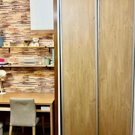 The apartment includes a separate toilet, a shower, and a washing machine for your comfort. Hair dryers can also be found.