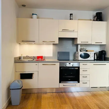 The apartment offers guests the convenient feature of hair dryers, bath sheets, and towels in the bathroom.