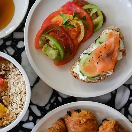 A continental breakfast is available daily from 7:00 till 10:00 in Okko Hotels Nice Aeroport. At Cave a manger restaurant you can taste vegetarian food.