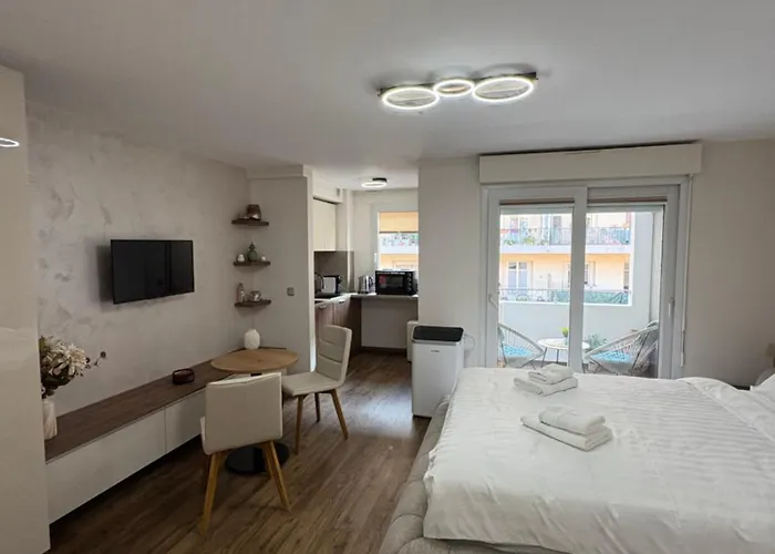 The hillside park "Parc Castel-des-deux-Rois" is situated 0.4 miles away, and the Vast Louis Nucera Public Library is in the vicinity of this apartment. The apartment is nestled 16 minutes' stroll from the historic Castle Hill of Nice Hilltop Park.