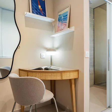 The 35 ft² Nice Renting - Hugo - Luxury Honeymoon Suite Terrace Park View Free Parking is situated in the very heart of Nice, merely a 6-minute walk from Cave Rivoli. Wi-Fi is provided for both business and leisure activities.