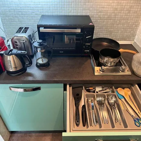 Studio At The Heart Of Carre D'Or 2 Mins Sea Wi-Fi villa features a full kitchen with an electric kettle, coffee and tea making facilities, and a kitchenware. Un Service Presque Parfait is a dining choice located a 5-minute walk away. Thanks to Sevillan bus stop, located 250 feet away, guests can easily explore Nice.