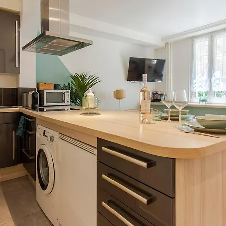 Studio Climatise A 50M Des Plages features a kitchenette area fitted with a fridge, a toaster, and a stovetop. The nearest bus stop to the property is Congres / Promenade, which is 0.4 miles away.
