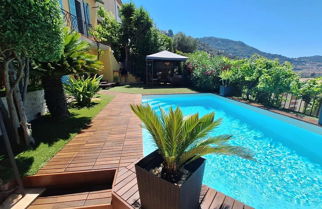 Villa In Nice French Riviera welcomes you with pool views. Bathroom facilities at the Nice accommodation also include a separate toilet. Bathroom comforts include a hair dryer, bath sheets, and towels.