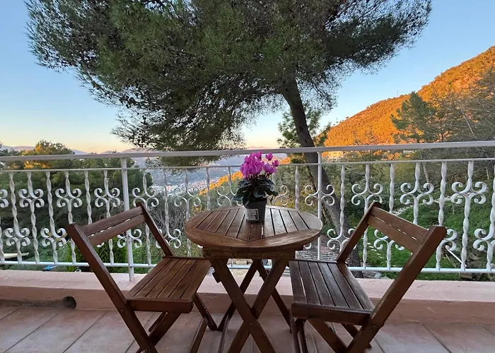The 25 ft² Studio Dans Villa Don Quijote Nice includes a terrace and is situated a 6-minute walk from Col des Quatre Chemins. Guests can make use of Wi-Fi for both business and leisure purposes.