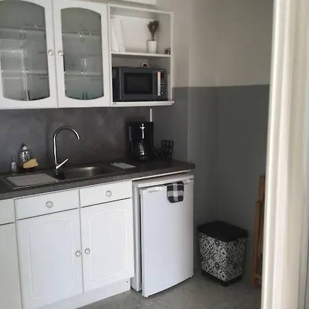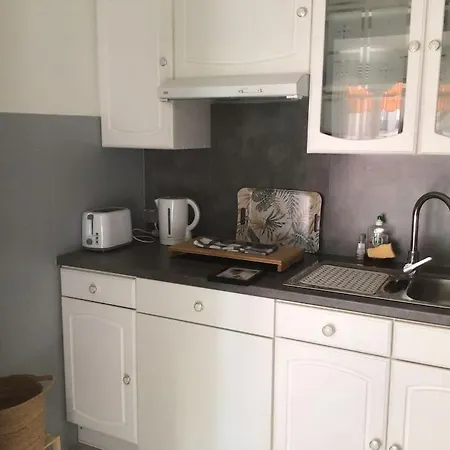 A kitchen area is featured at Vue Mer, 2 Pieces Lumineux apartment. The apartment is fairly close to the nearest bus stop Lenval / Promenade.